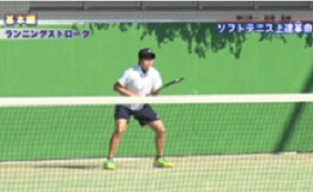 ソフトテニスでは軸足をしっかり決めて、体の回転動作でスイングしますが、試合で動かされて打つ時には、軸足が流れてしまったり、膝が曲がったりすることも多いものです。