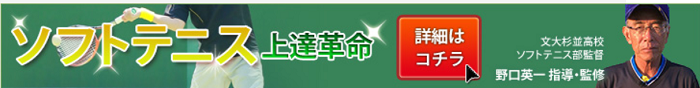 文大杉並高校ソフトテニス部監督 野口英一監修のソフトテニス上達革命DVDの内容は、ストロークなど基本の打ち方からコツ、練習方法まで惜しみなく紹介してあります。